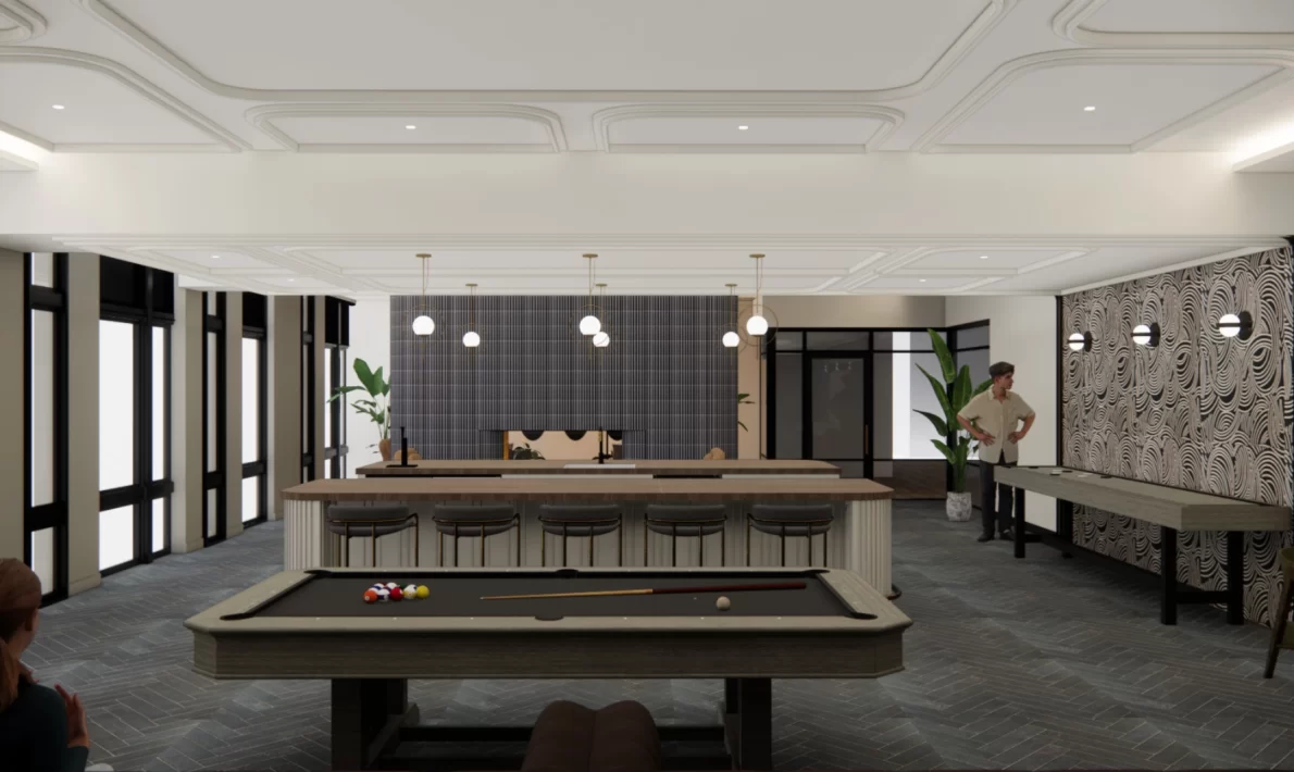 From the warmth of grand lobby lounges adorned with local art and inviting fireplaces, to rooftop decks with sweeping city views and lush pool terraces perfect for gathering, each corner inspires connection and comfort. Thoughtfully curated co-working spaces, lively game lounges, and creative maker rooms blend productivity, play, and imagination, while the central landscaped urban green and upgraded Riverwalk offer serene moments just steps from your door.
